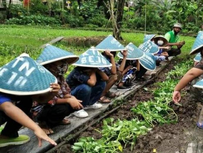 Wisatawan mendapatkan edukasi mengenai jenis sayuran kangkung, dan berbagai jenis tanaman yang ada di Kang Bejo.