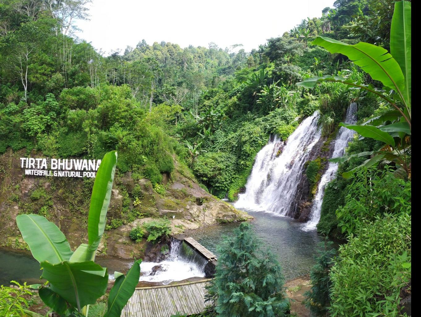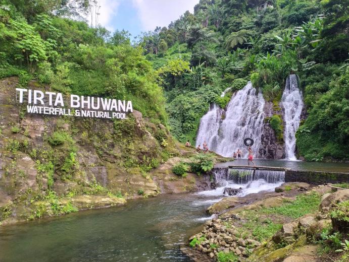 Di bawah aliran air terjun, dibuatkan kolam penampungan, sebuah kolam dengan airnya yang segar sehingga tempat ini dikenal juga dengan nama Tirta Bhuwana Waterfall and Natural Pool. Kolam renang alami (natural pool) dari air terjun Tirta Bhuana ini, menjadi tempat menarik untuk berenang dan mandi. Berada di kawasan tempat rekreasi alam ini, anda bisa merasakan langsung segarnya mata air pegunungan dan dalamnya kolam sebatas leher orang dewasa.